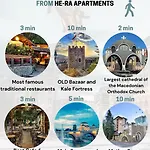 A 8 szobás He-Ra Apartments With Free Parking Szkopje Szkopje központjában található, városra néző kilátással. A közelben nyilvános parkoló elérhető.